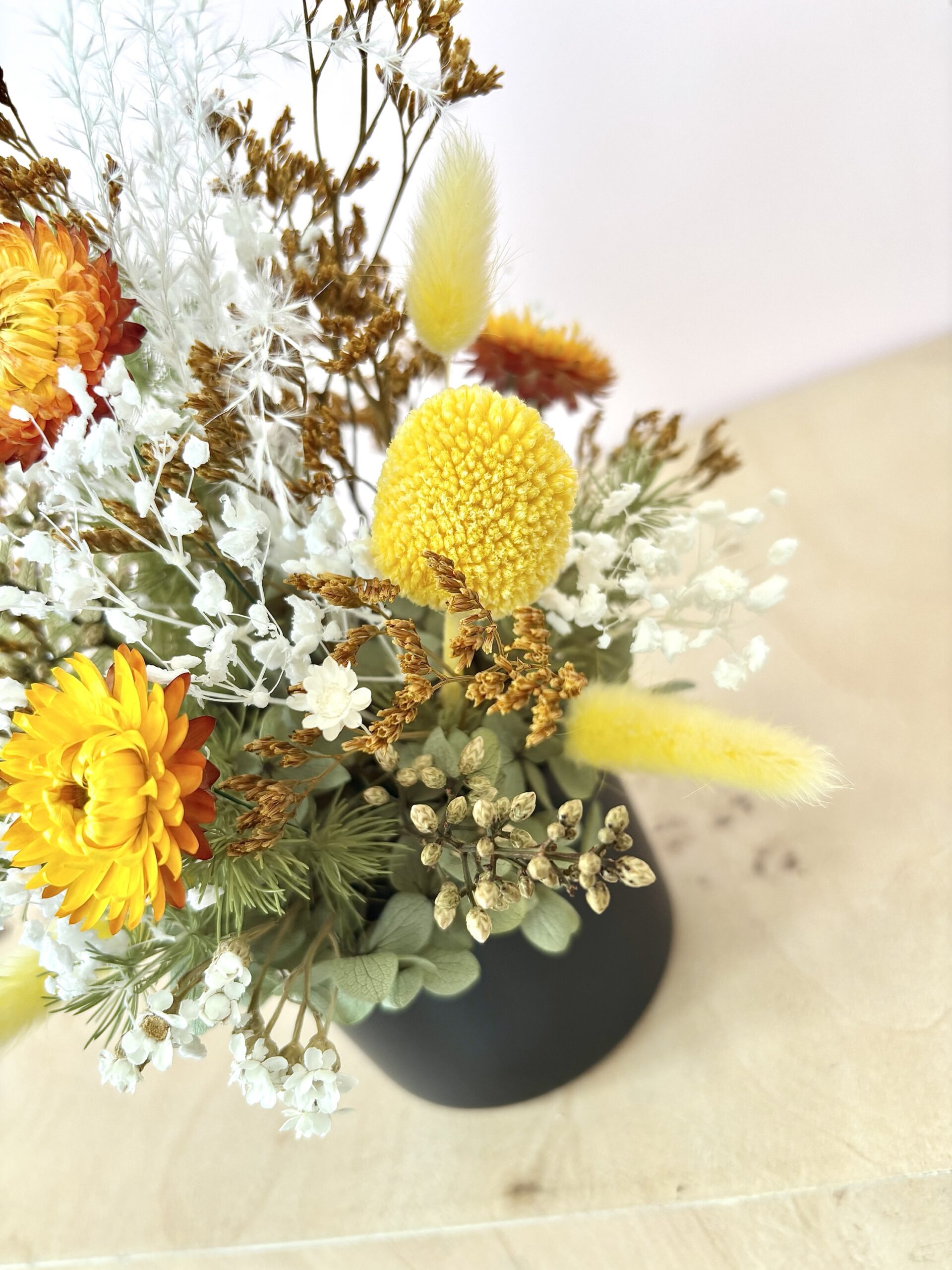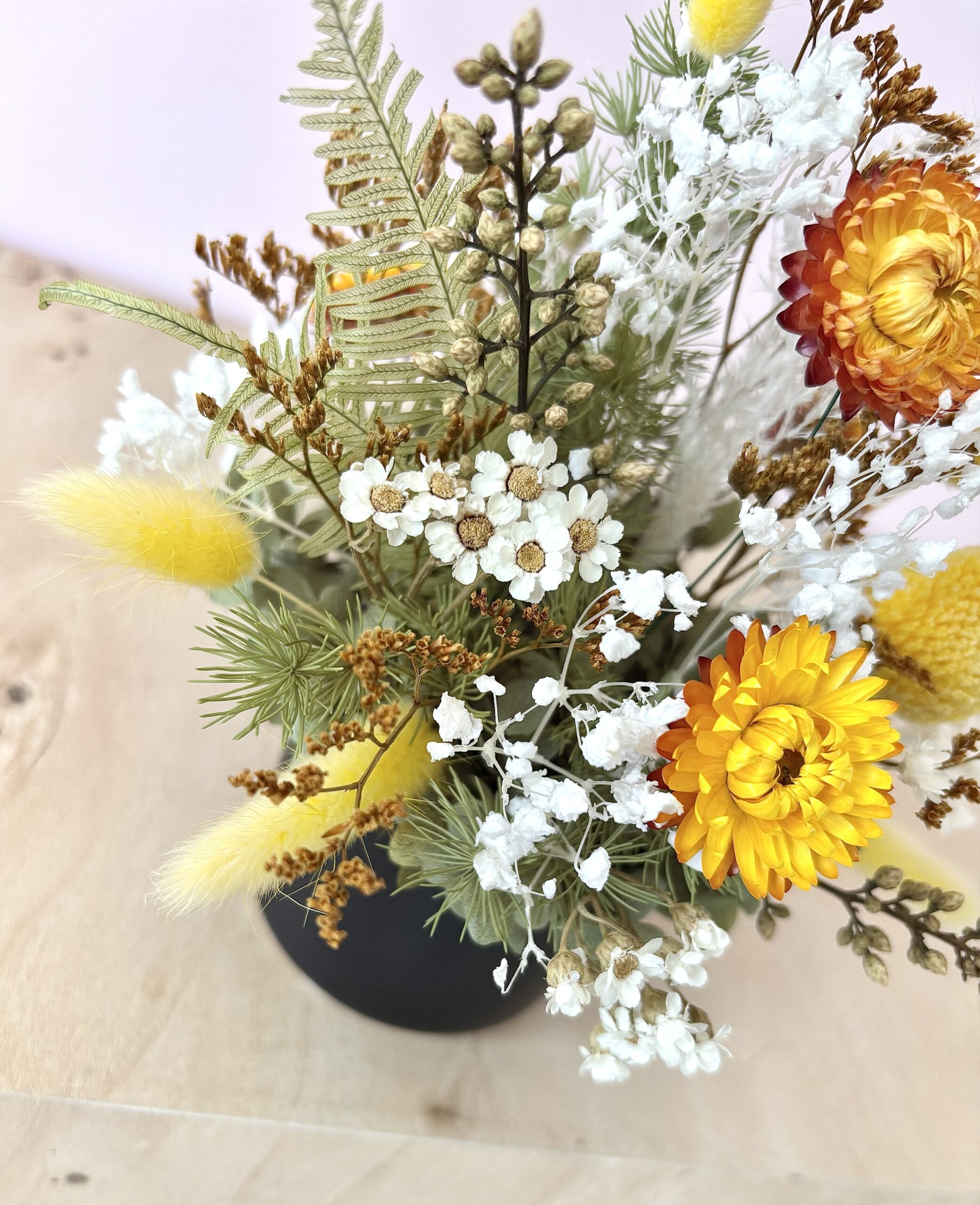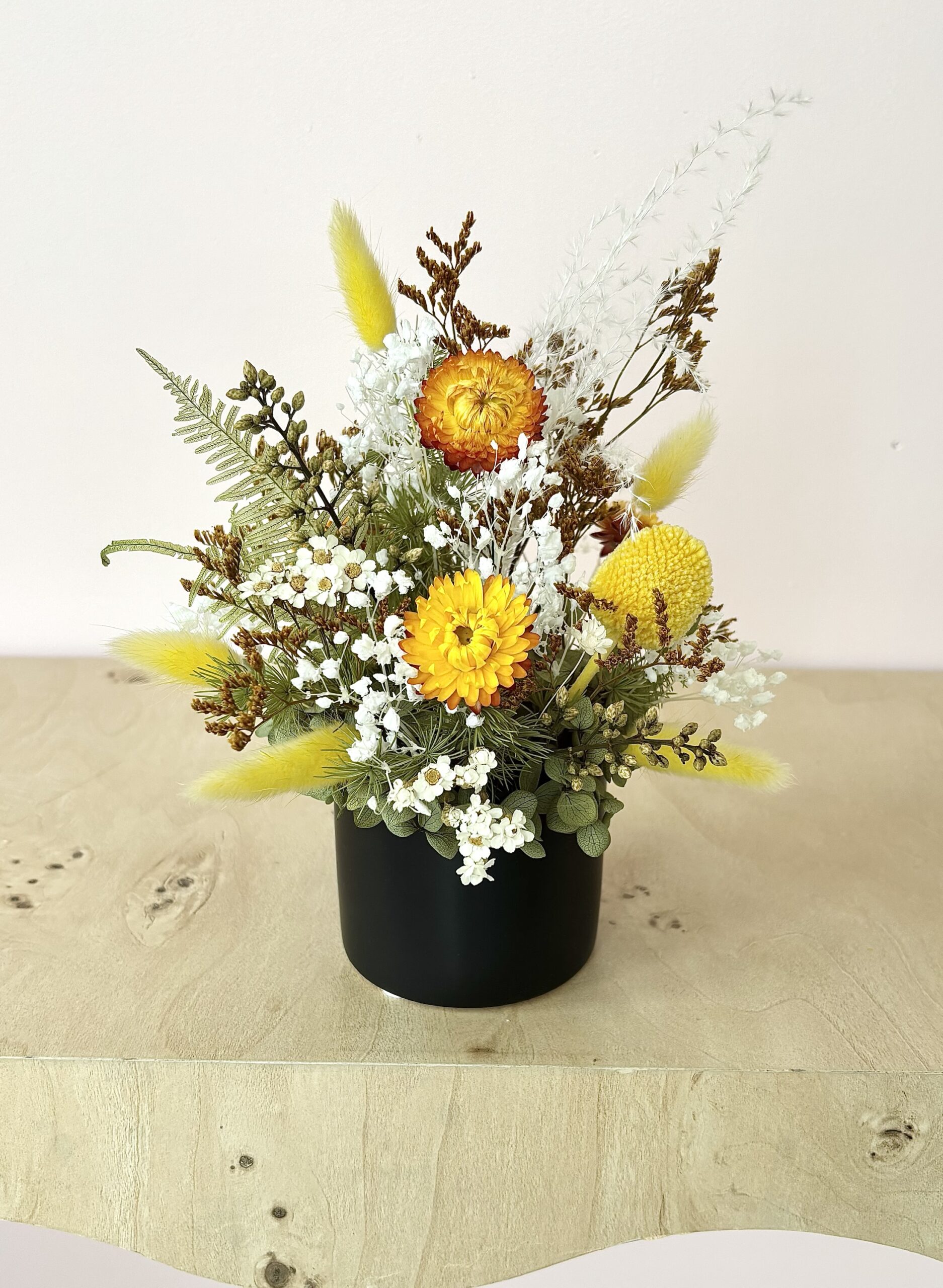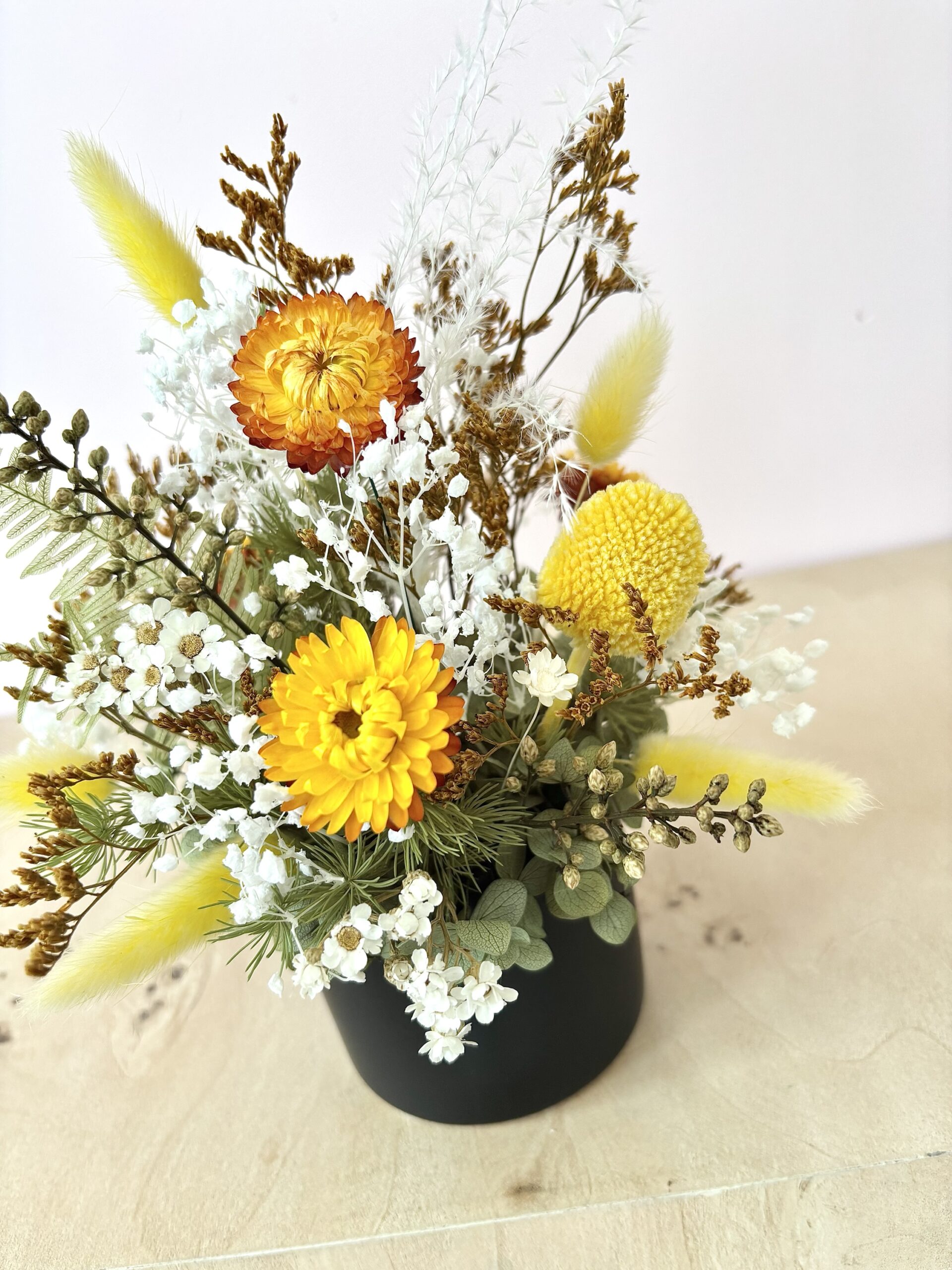 Eden is a cute mix of yellows, greens and whites in our mini black ceramic pot. A great little size for gifting, or popping in the perfect lil spot at home.