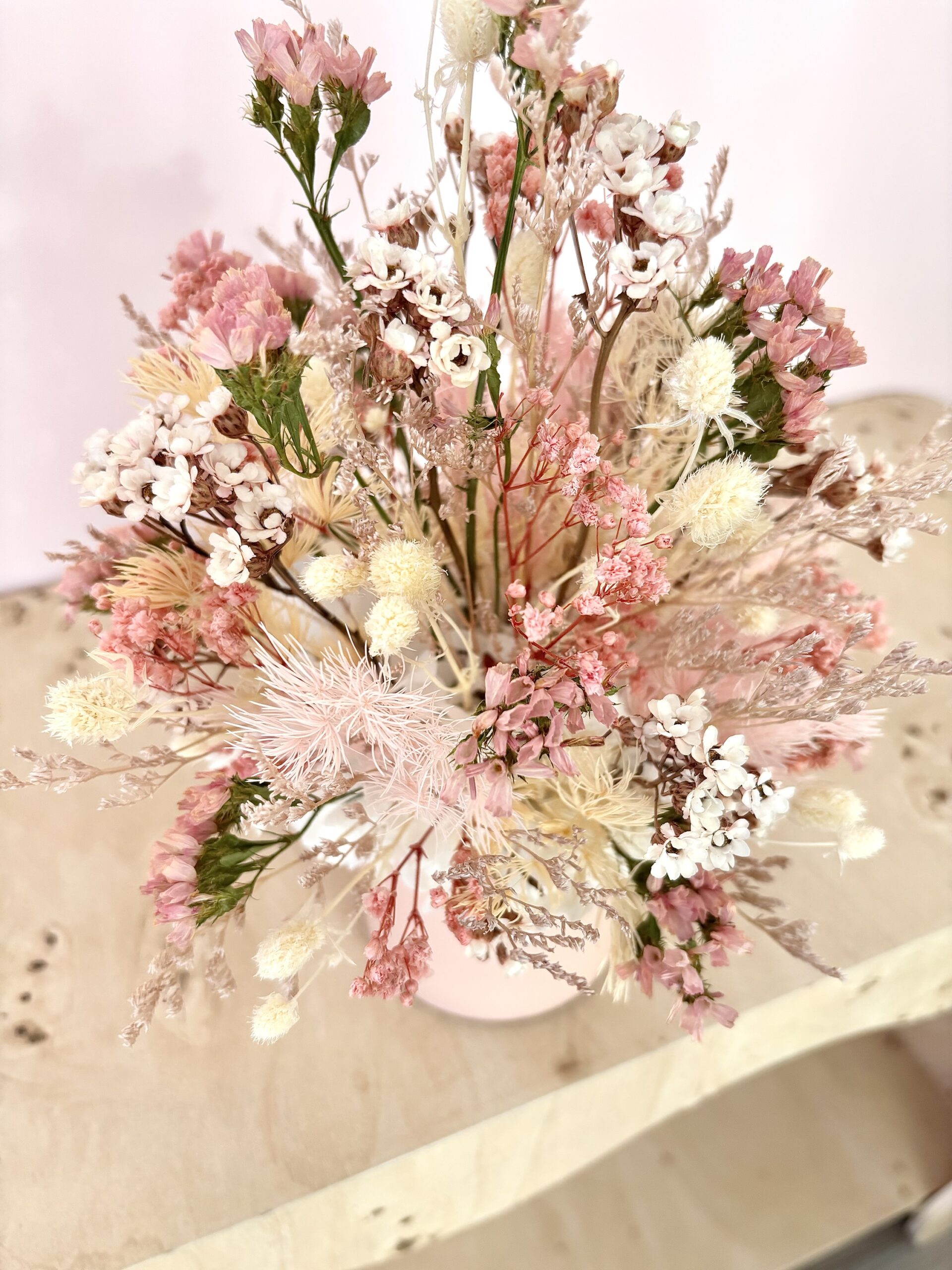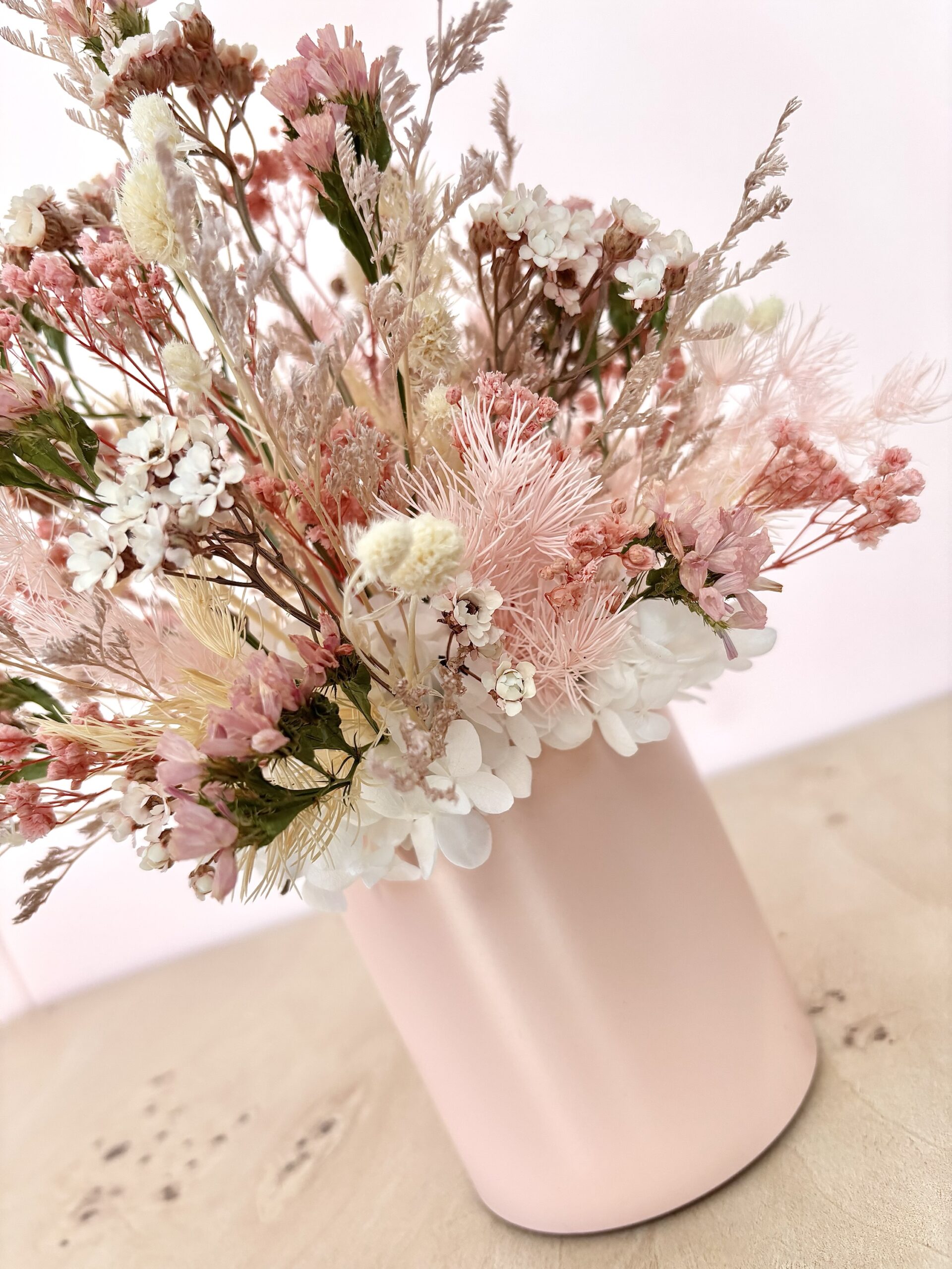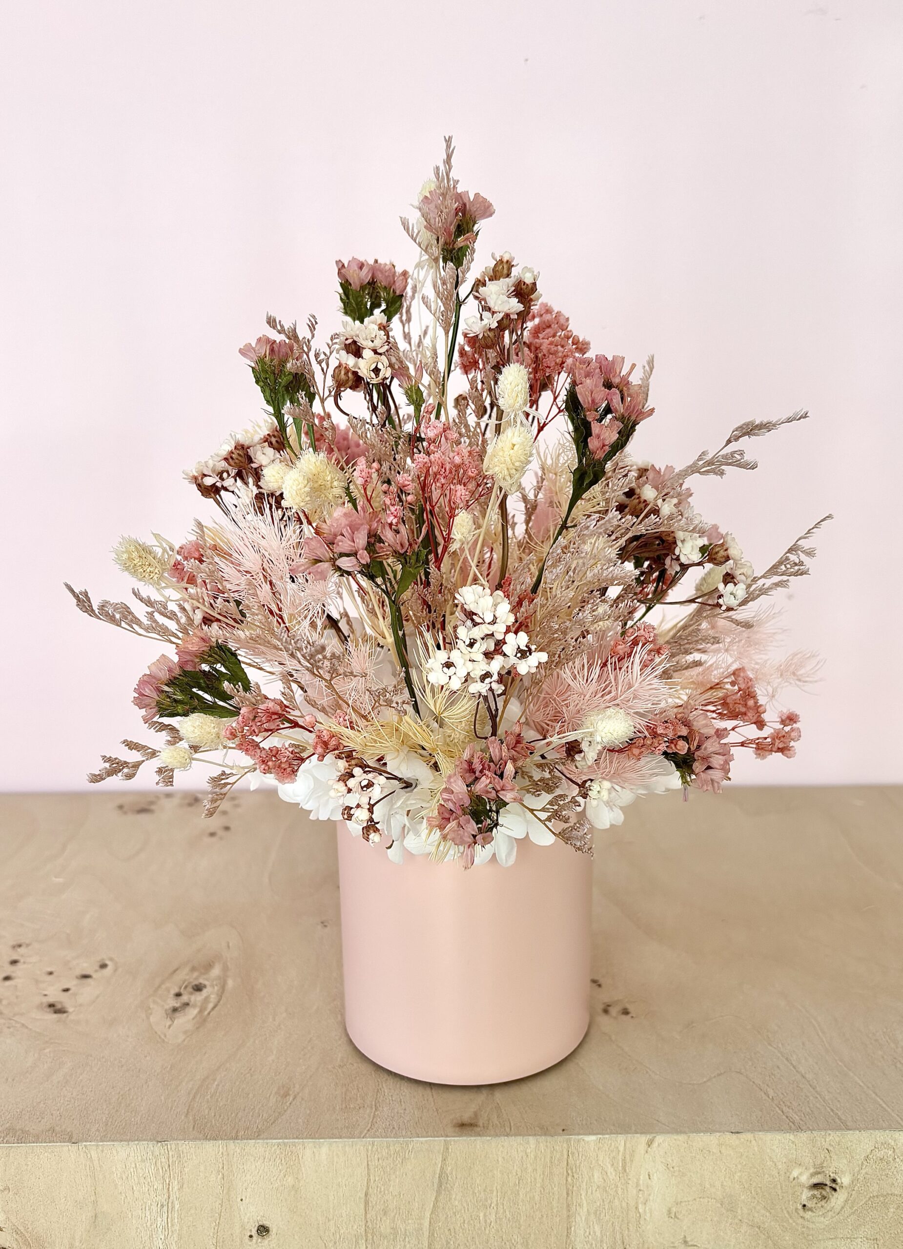 Hayley is a gorgeous mix of coral pinks, peaches,whites and naturals in a pink pot.