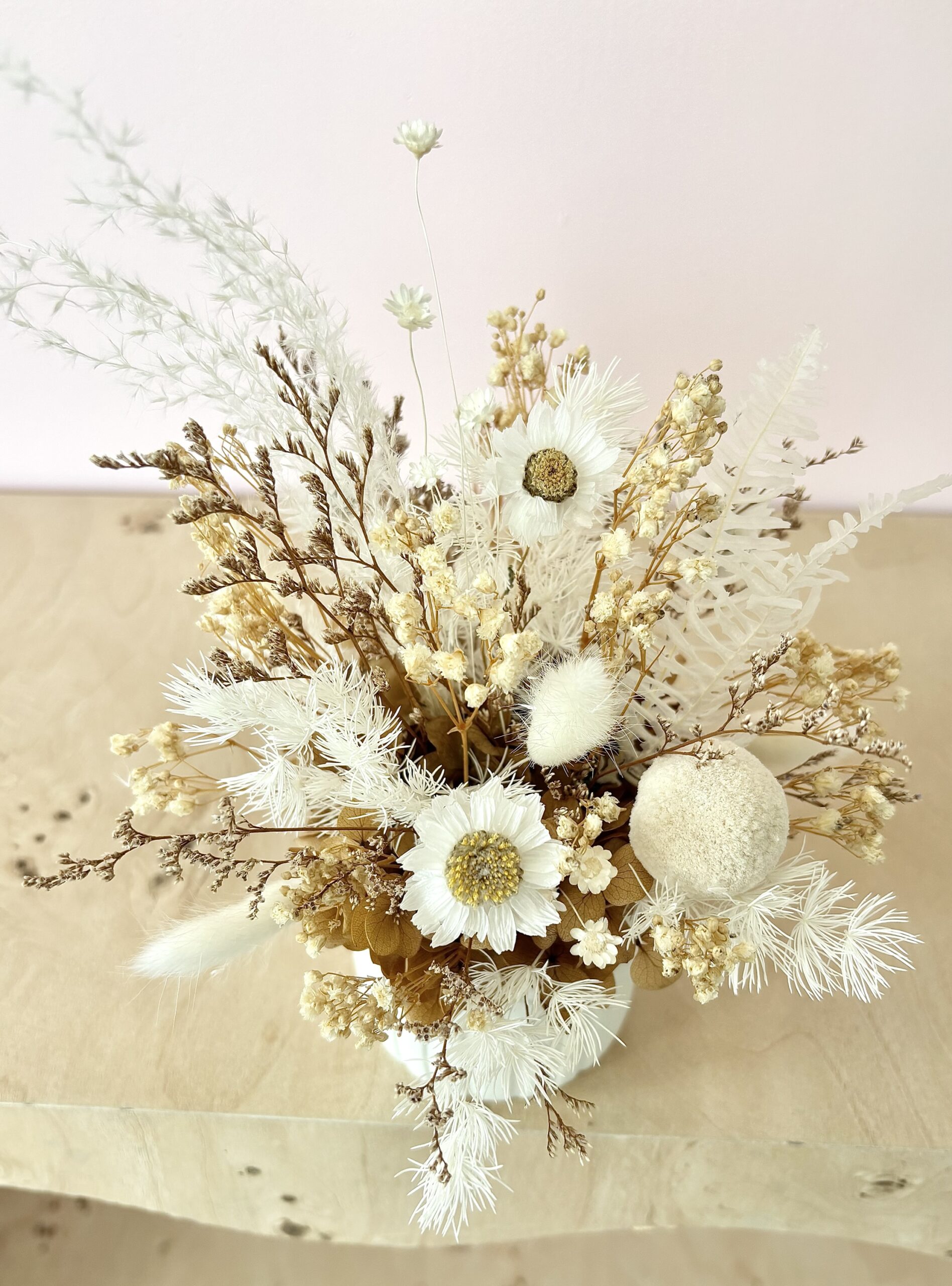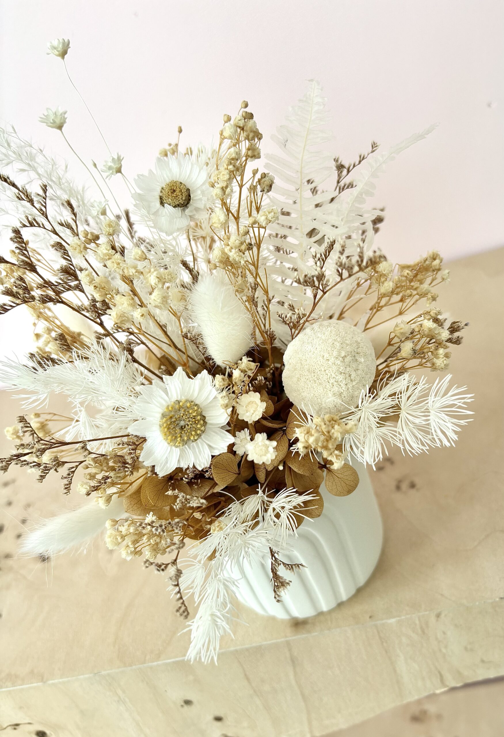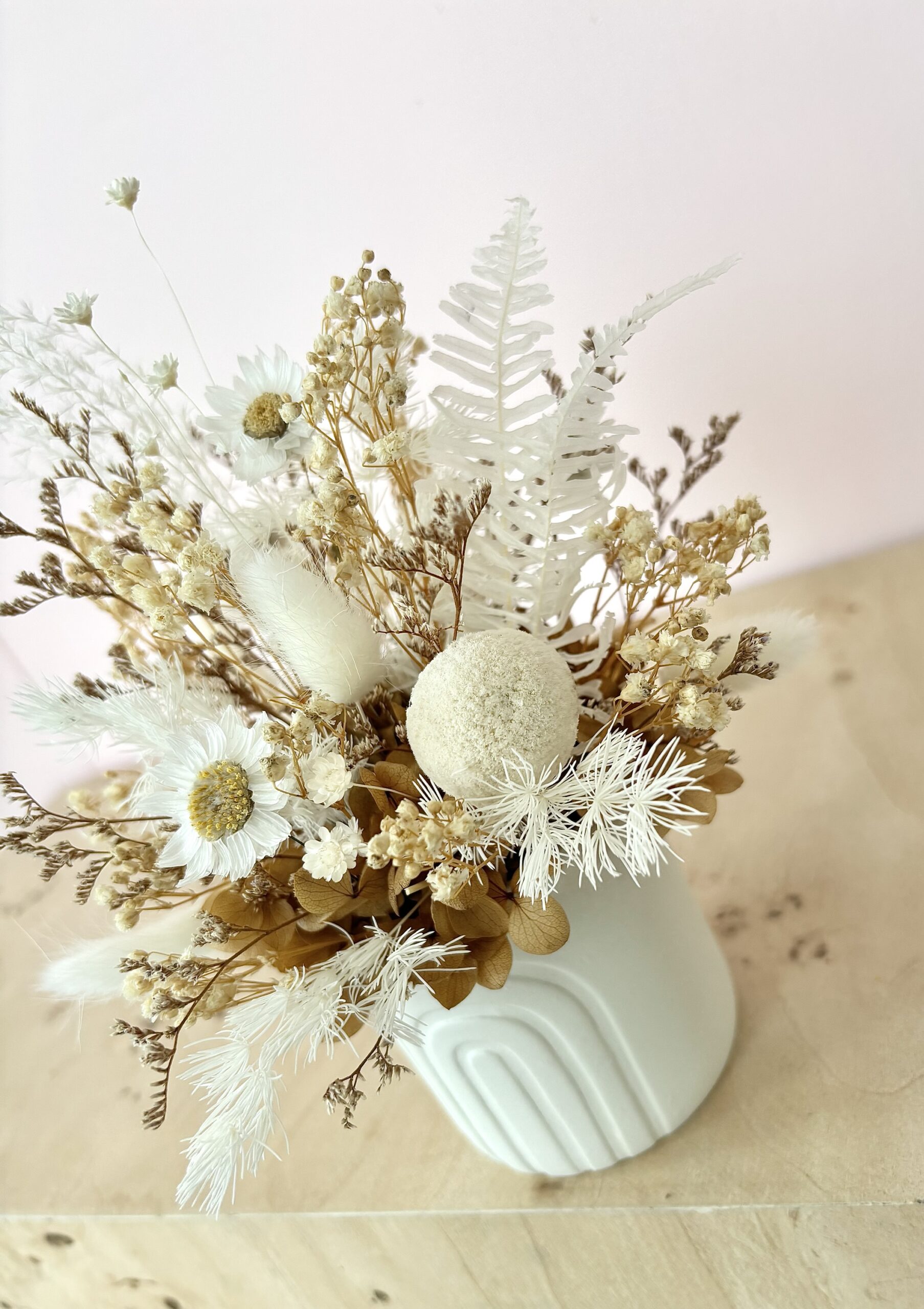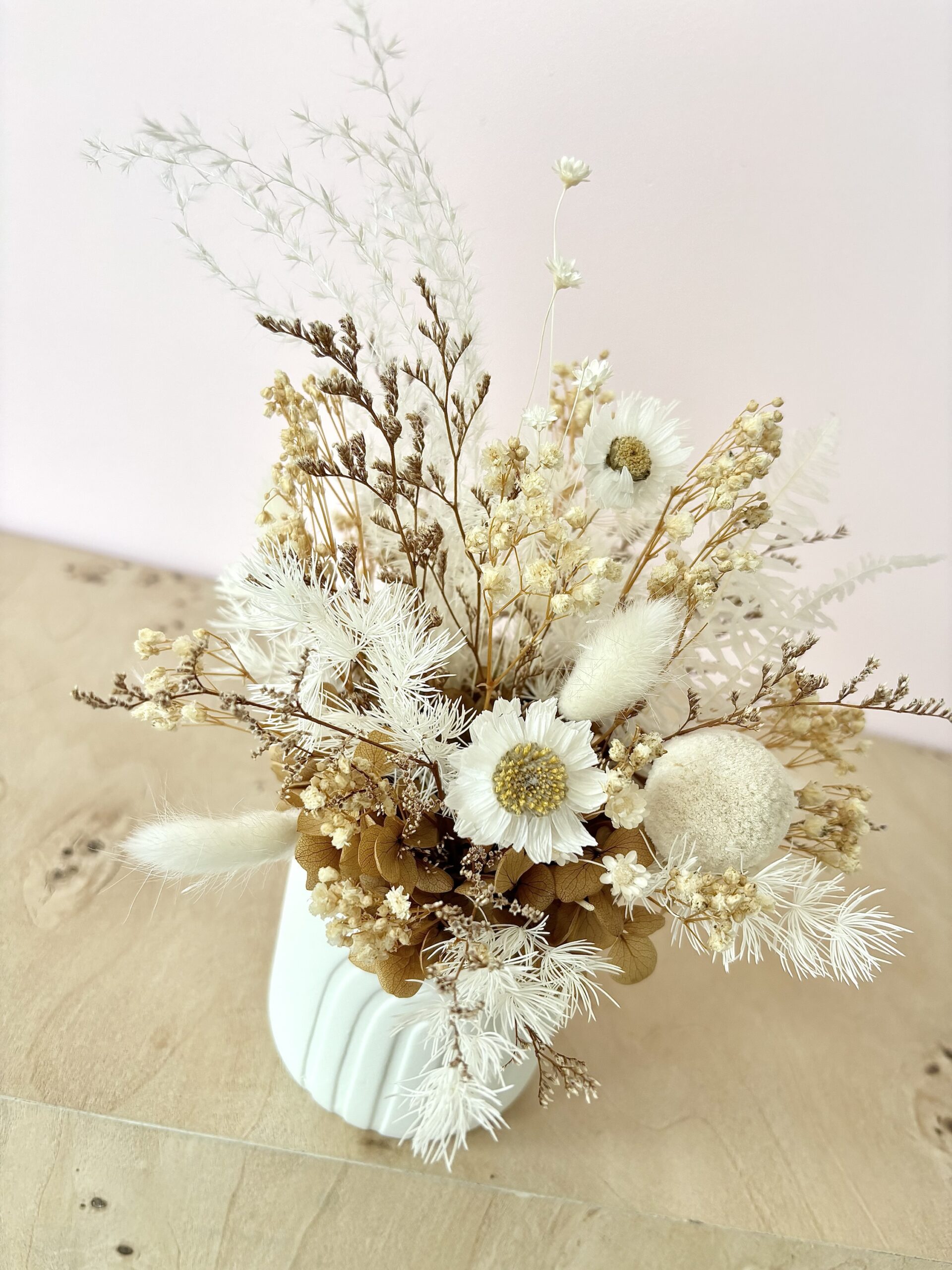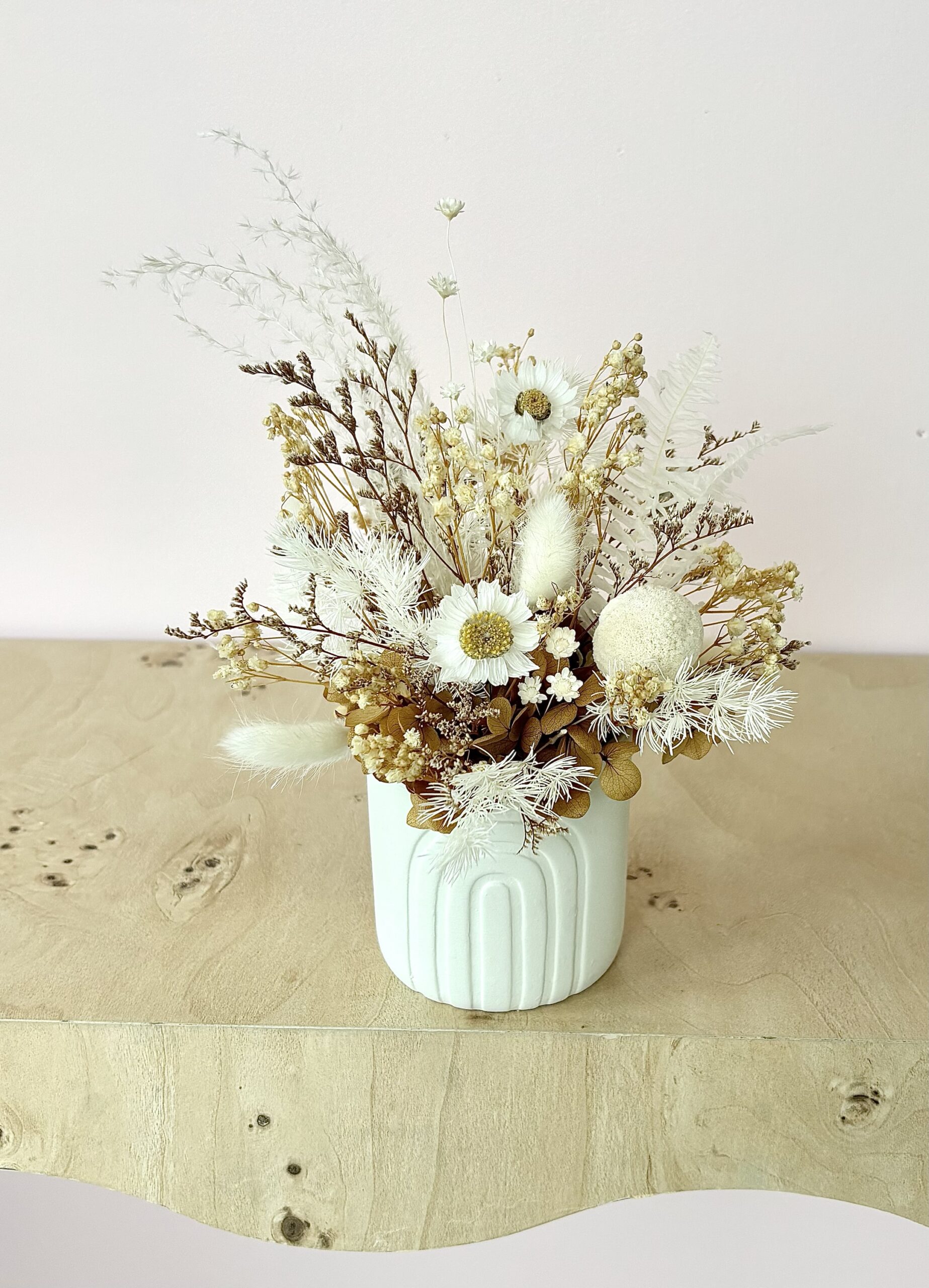 Stella is a cute neutral arrangement in a mini white ceramic pot. A great little size for gifting, or popping in the perfect lil spot at home.